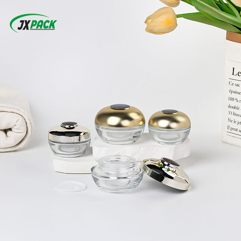 کارخانه ما در تولید شیشه های لوازم آرایشی شیشه ای با دیواره ضخیم و لوکس با قیمت رقابتی برای خریداران عمده تخصص دارد. این شیشه کرم زیبا با درب طلایی آبکاری شده، ظاهری ممتاز را با تامین مقرون به صرفه ترکیب می کند.